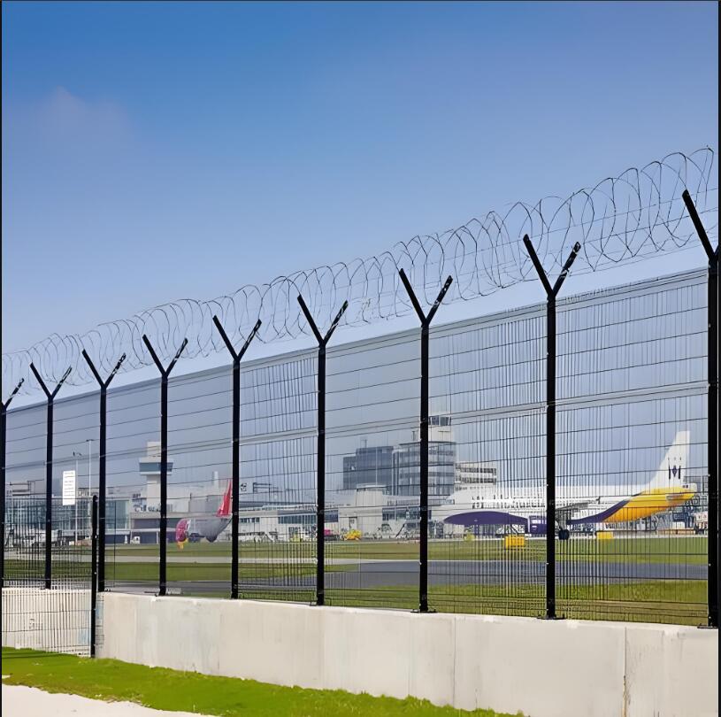 飛行區(qū)護(hù)欄網(wǎng)機(jī)場(chǎng)護(hù)欄網(wǎng)是一種專門用于機(jī)場(chǎng)周邊的防護(hù)設(shè)施。