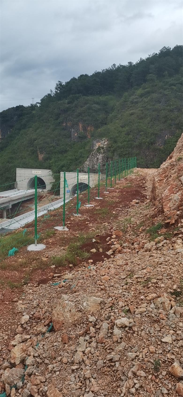 廣西南寧刺繩隔離柵主要由優(yōu)質(zhì)的低碳鋼絲、不銹鋼絲、包塑絲、鍍鋅絲等制成。這些材料具有高強度、耐腐蝕性等特點,能夠保證隔離柵在不同環(huán)境下長期使用。通過刺繩機械將帶刺的鐵絲纏繞在主絲(股絲)上面,經(jīng)過正擰、反擰、正反擰等多種編織工藝而成。部分刺繩隔離柵還會搭配刺鐵絲立柱,如圓管、U 型鋼方管以及 GRC 復(fù)合立柱等,以增強其穩(wěn)定性和支撐力。